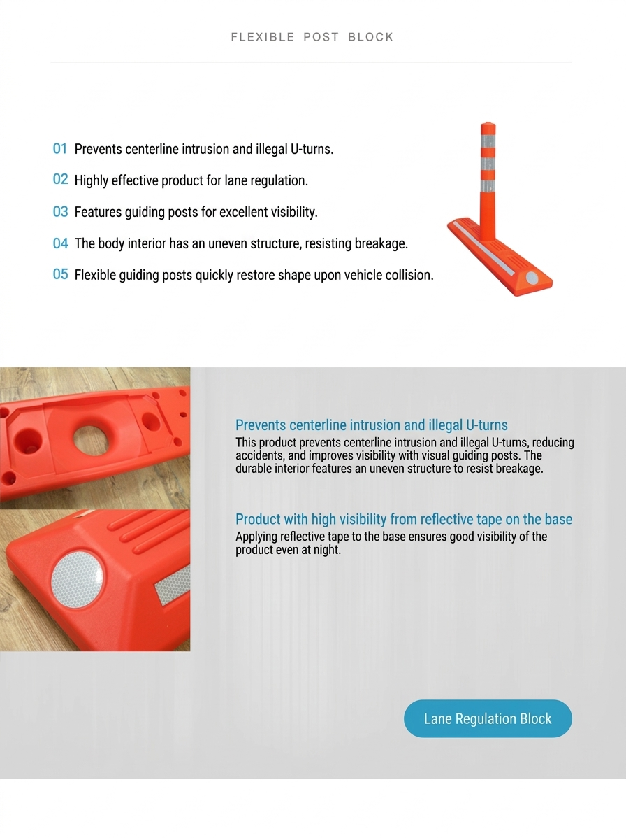 Share Flexible Post Block(M) Product Description Product Inquiry Partnership Inquiry Product SpecificationsProduct NameFlexible Post Block(M)MaterialPU,Composed PE,HDPESpecifiactionL1,000 x W200 x H80mm Detailed Description